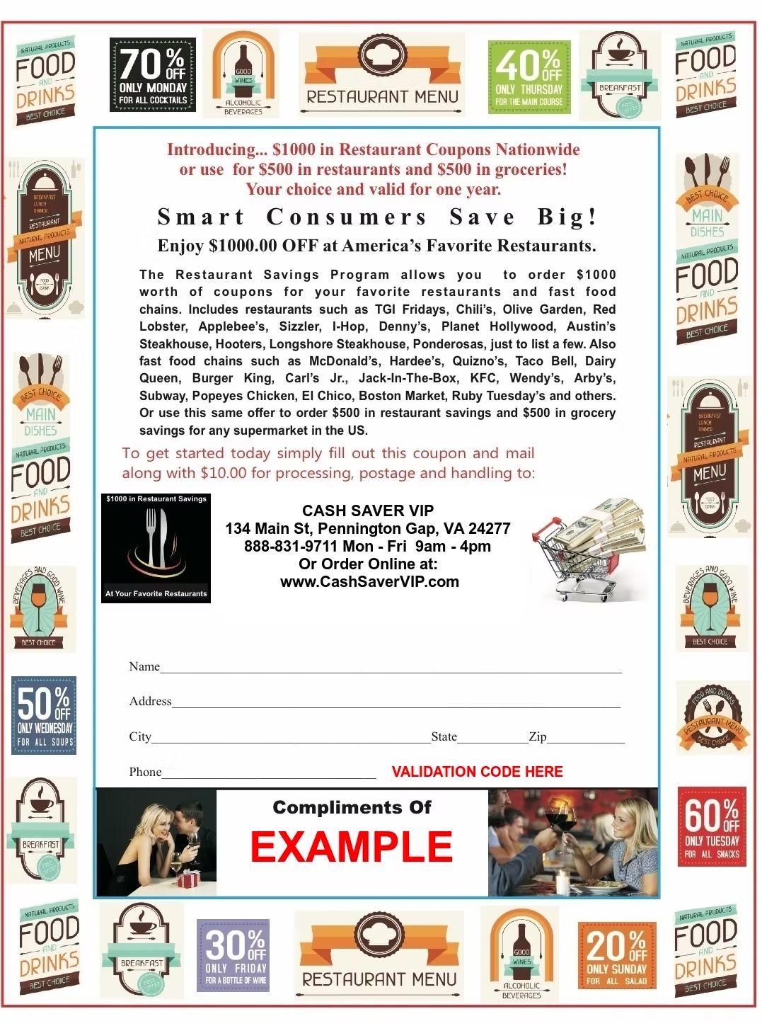 - $1,000 Restaurant Savings Certificates